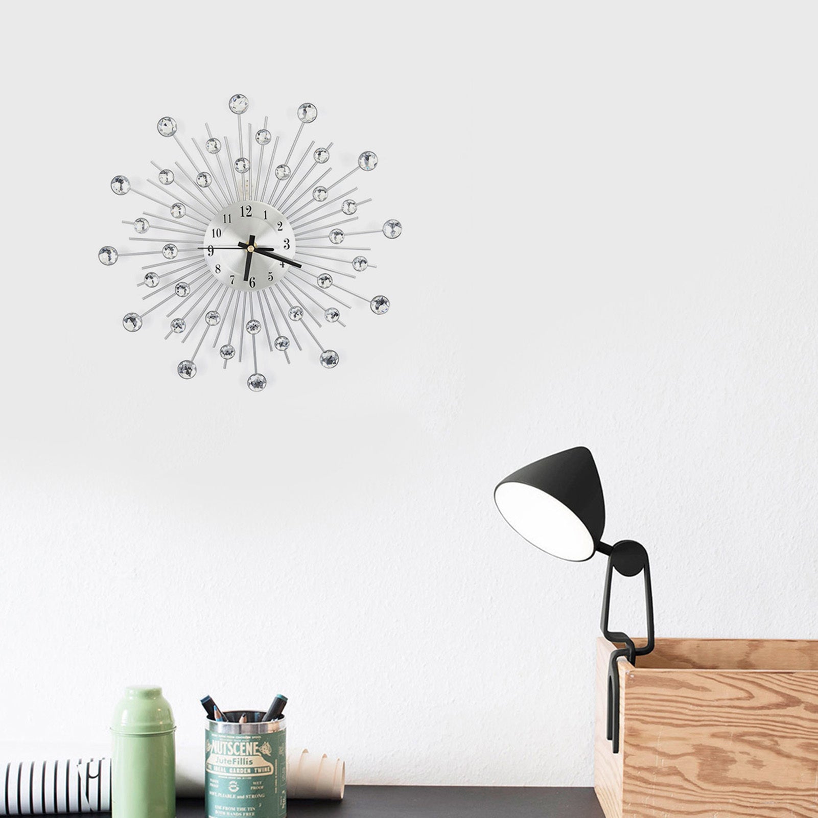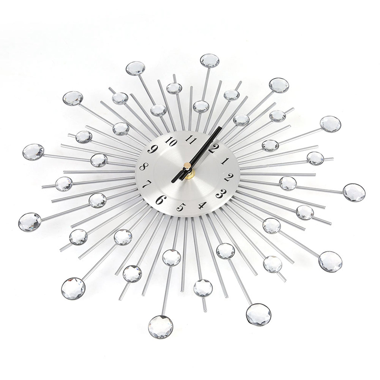 1、Metal pointer and dial with high temperature resistant painting, will not fade and non-deformation 2、Large and number dial indicate at every hour, making it easy to see from any corner of your room 3、Silent movement, non-ticking, ensures precise time and completely noiseless environment, giving you a quiet night 4、High-quality rhinestone, exquisite workmanship, luxury and elegant design meet all your decoration need 5、Applicable places: living room, office, study, bedroom, room, hotel, club, hotel